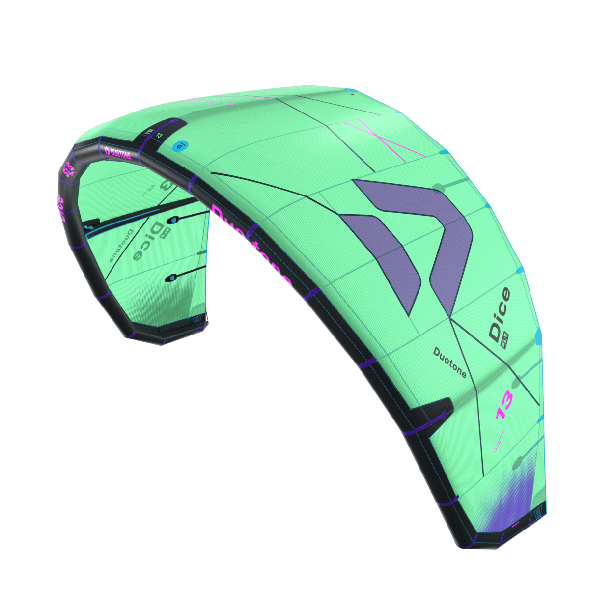 The Duotone Dice SLS, the ultimate sporty freestyle and wave allrounder crafted for advanced riders. Built with premium Penta TX and Trinity TX materials, the Dice SLS offers pure and intuitive control on three struts, providing an exhilarating experience whether you’re performing technical tricks or riding the waves. This kite is designed for those who demand explosive pop and crisp slack in their freestyle maneuvers. Spicy it up and experience effortless drift while navigating waves, allowing you to maintain speed and control as you harness the energy of the ocean. With smooth and balanced power, the Dice SLS delivers the kind of performance that inspires confidence in any session. The Dice SLS features speedy turning capabilities, making it a solid performer in all conditions. One of the key advancements is the longer depower stroke, which enables smoother power delivery. The refined arc shape, with a more open center and aggressively pulled-in tips, enhances the depower range while maintaining progressive power development for smooth transitions. Lighter steering is achieved through improvements to the canopy tension and attachment at the tip. This enhances the transfer of steering input, resulting in reduced bar pressure without compromising feedback, giving riders a more engaging experience on the water. Faster and more controlled turning is another highlight of the Dice SLS. With adjusted batten positions and an improved canopy structure, tip flutter is minimized, allowing for tighter, quicker, and more precise turns— essential for both loops and tight maneuvers. When it comes to wave riding, the Dice SLS offers playful and reactive handling. Enhanced steering responsiveness and balanced power delivery make it lively and easier to maneuver in dynamic wave conditions, allowing riders to carve through the surf with ease. Moreover, the optimized bridle setup and improved load distribution provide increased control in gusty or challenging conditions, ensuring stability when faced with unpredictable winds. To top it off, the Dice SLS has been fine-tuned for freestyle performance. A deeper position in the wind window, combined with a refined shape, delivers explosive pop and clean slack, making it easier to execute hooked or unhooked technical tricks with confidence. Challenge yourself with the Duotone Dice SLS 2026, the perfect combination of performance, versatility, and cutting-edge technology for those ambitious riders who thrive in both freestyle and wave riding scenarios.